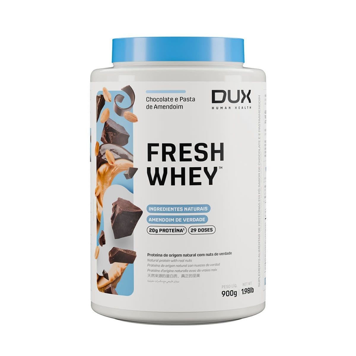 / FRESH WHEY CHOCOLATE E PASTA DE AMENDOIM – POTE 900G – DUX